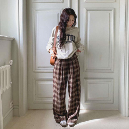 옷자락 / 여성용 레이온스판 체크와이드밴딩팬츠