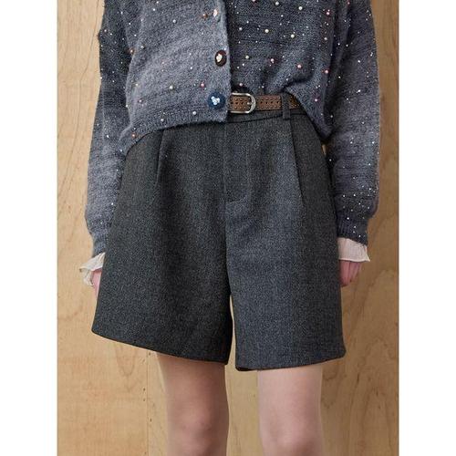 [마쟈]클래식 핀턱 테일러드 모직 하프 팬츠