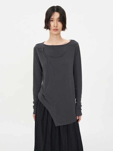 [인사일런스우먼] 트위스트 드레이핑 롱슬리브 CHARCOAL