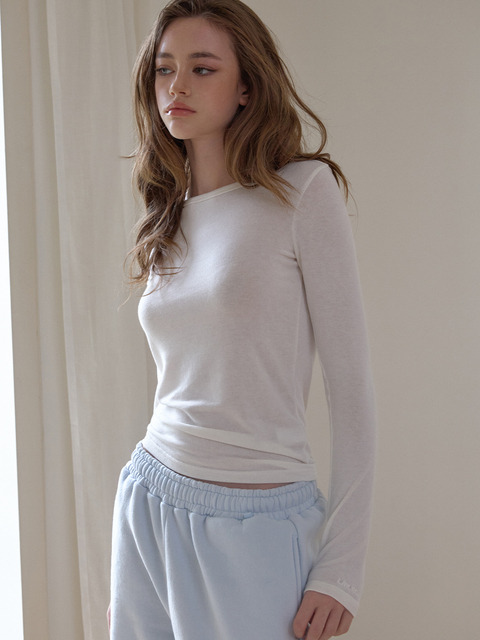 [아오레이] 라운드 롱 슬리브 티셔츠_화이트