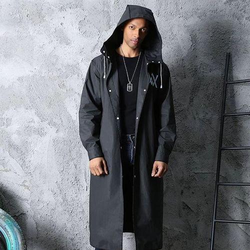 패션 블랙 성인용 윈드브레이커 스타일 방수 롱 레인코트 여성 남성 후드형 야외 오토바이, 자전거, 하이킹, 낚시용