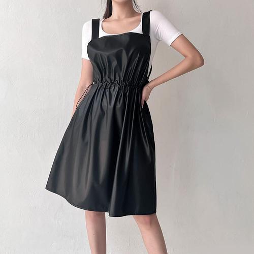 [옷자락] [시즌오프]레자원피스 스트링 레더 블랙 끈 미니원피스_5