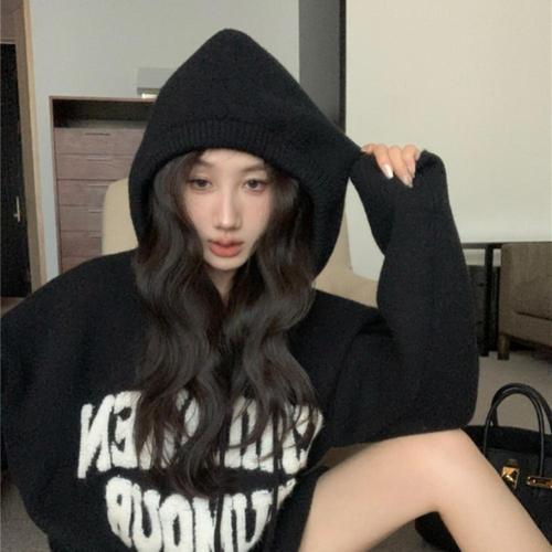 (스타일하우스)후드집업 후디 점퍼 홀가먼트 레터링 니트 4color