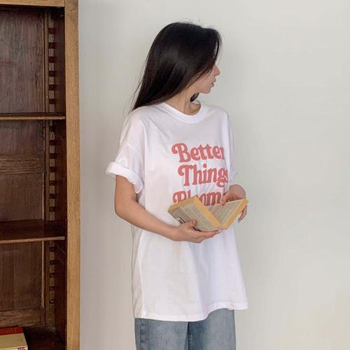 [옷자락] 여자 발포 봄여름 순면 루즈핏 레터링 반팔티