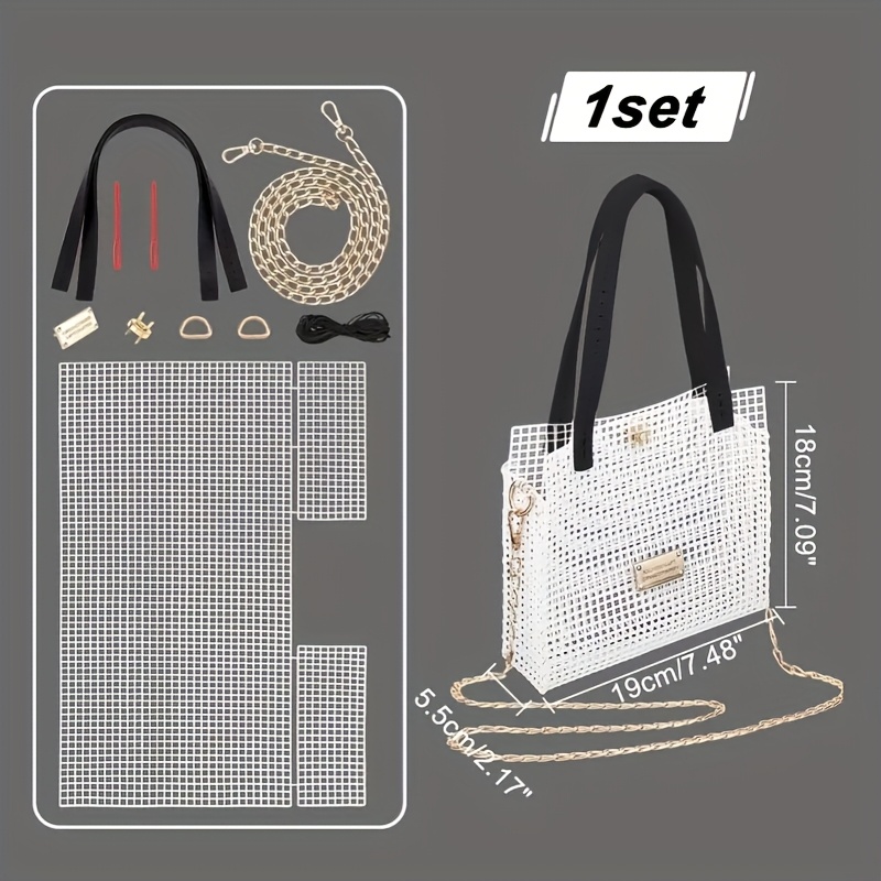 TEMU 1세트 PU 가방 스트랩 메탈 링 백 체인 플라스틱 핀 마커 니팅 플라스틱 메쉬 소재 키트, 랜덤 컬러 및 핀 수량 DIY 지갑 만들기 세트, 사계절용