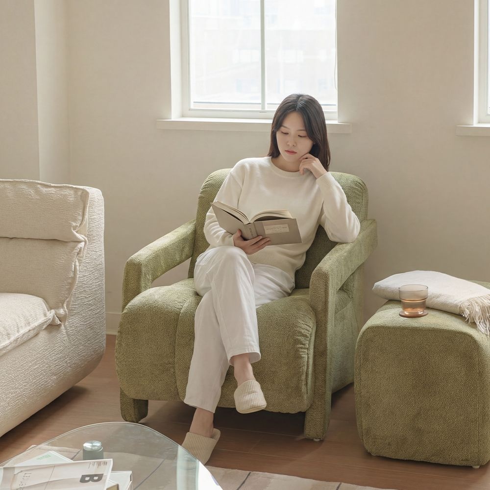 필리 1인 패브릭 소파 스툴 세트 화이트 그린 브라운 안락의자 암체어 생활발수 쇼파