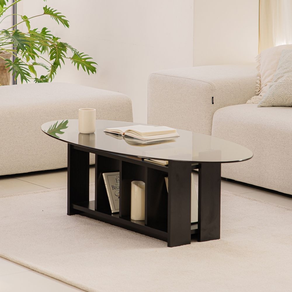 파레드 타원형 좌식 강화유리 수납 소파 거실 테이블 800 1200 블랙