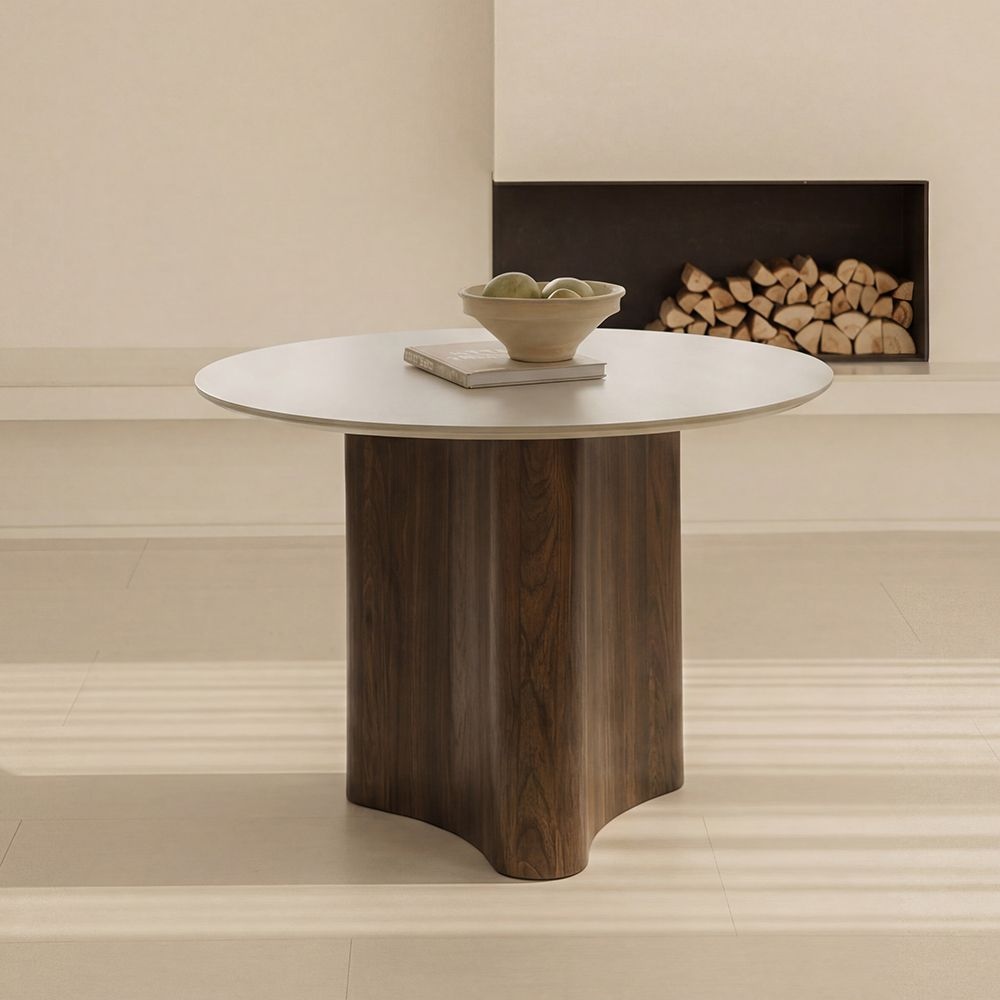 렌 포세린 세라믹 원형 테이블 1100 소리없는 2인용 4인용 식탁 월넛 화이트
