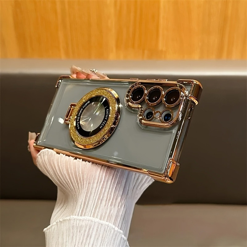 TEMU 여성을 위한 높은 내구성 아크릴 폰 케이스, 내장 스탠드, 삼성 갤럭시 S24 울트라, S23 울트라, S23 FE, S25 울트라, S24, S23, S25 플러스와 호환 가능 - 렌즈 필름 보호 및 우아한 디자인으로 설계되었습니다.