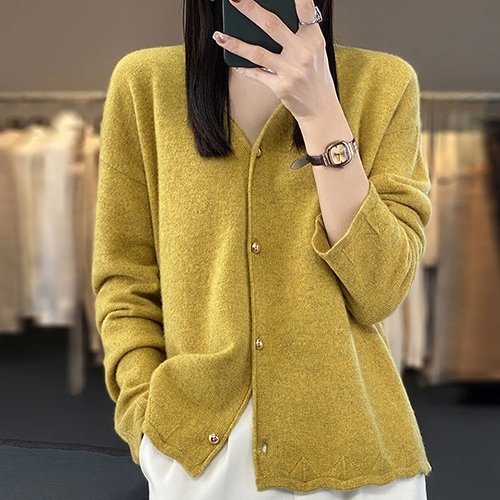 [유니제이] 일렌트 패턴 디테일 골드 버튼 가디건