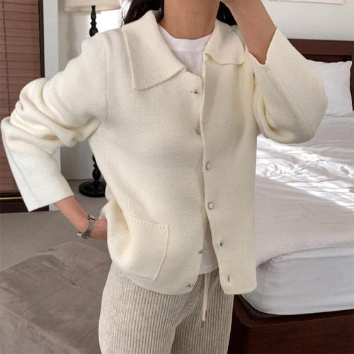 [옷자락]여성 심플 일상룩 봄 카라넥 포켓 버튼 가디건