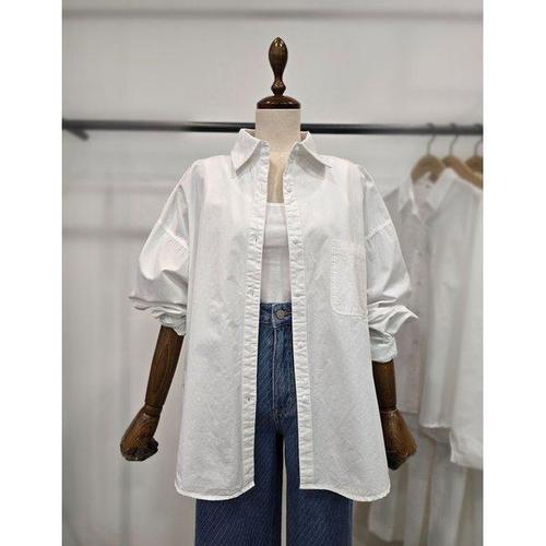남자 비침없는 반오픈 단추 오픈카라 루즈핏 긴팔셔츠
