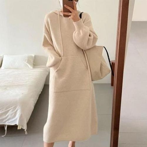 [엄지척]로맨틱 은창)센터 포켓 니트 후드 원피스 치마 롱원피_19803632_667501