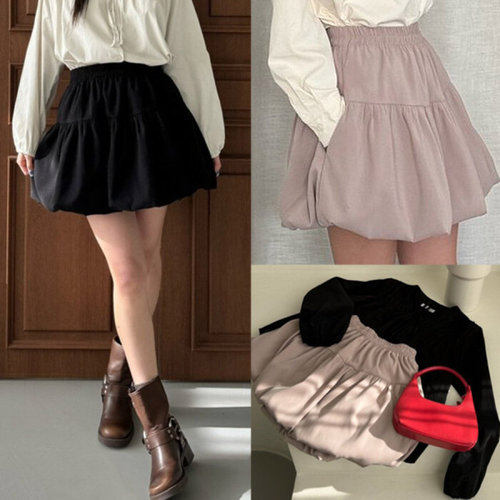 2025 퍼프 A라인 미디 스커트 숏사이즈 전용 볼륨감 있는 퍼프 스커트 허리라인업 체형커버 디자인 데일리 데이트룩