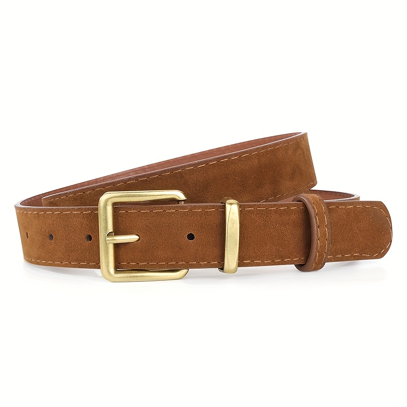 TEMU 여성용 빈티지 스웨이드 벨트 골든톤 메탈 버클 - 캐주얼, 오피스 & 이브닝 웨어를 위한 슬림핏 PU 가죽 벨트 - 브라운 & 블랙, 드레스 벨트, 다재다능한 옷장 필수품, 세련된 스타일, 매끄러운 질감