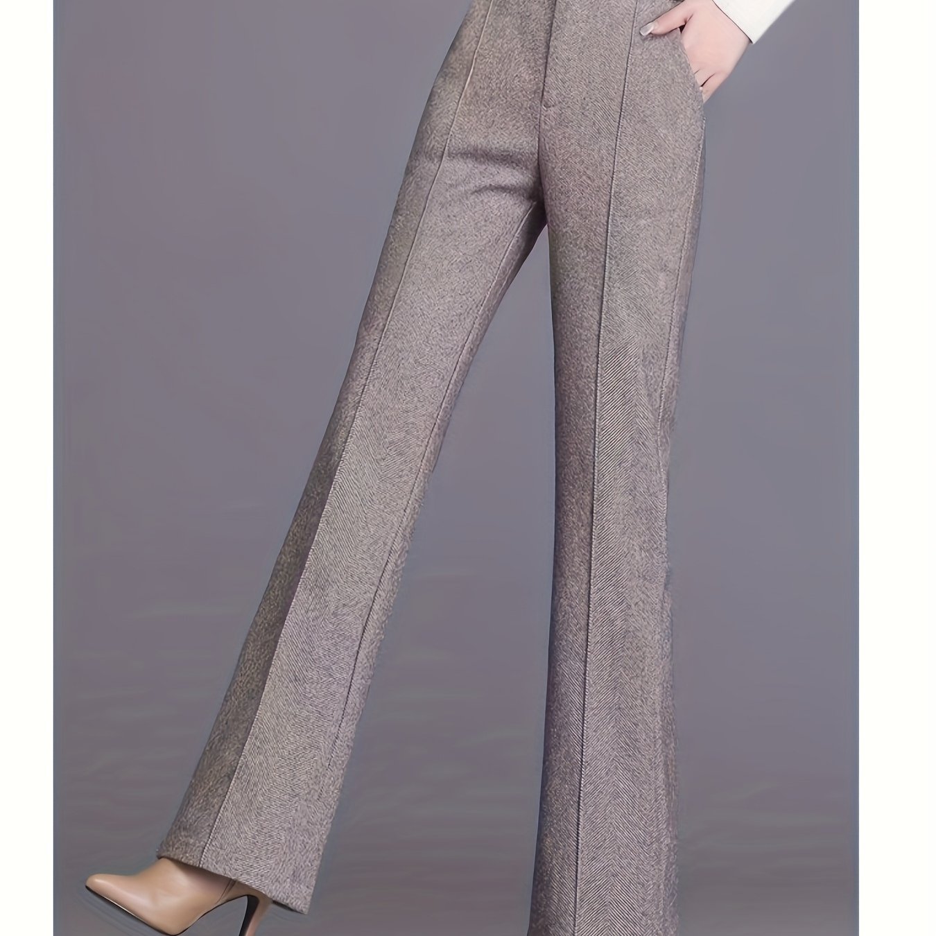 TEMU 여성용 하이웨이스트 플레어 팬츠 - 우아한 긴 바지, 버튼 클로저, 가을/겨울용 비침 방지 원단, 포멀 & - 여성용 프로페셔널 팬츠 (직장, 사무실, 파티, 캐주얼 복장) - 간편한 관리 드레스 팬츠|여성원피스|오피스룩|드레스