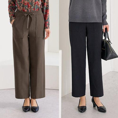 Made in Japan 겨울용 허리 편한 일본산 기모 스트레치 와이드팬츠 부드러운 밴 50대 60대 70대 중년여성 엄마옷 할머니옷 선물 빅사이즈 외출복 오피스룩 9600