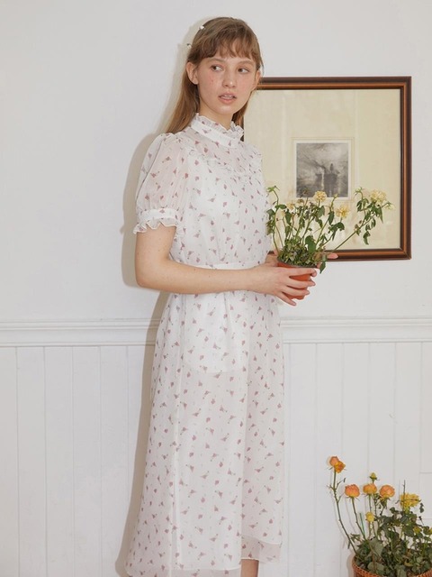 [일루스트리스 일루전] 아이보리 로즈 쉬폰 드레스