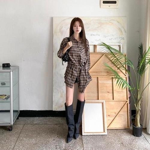 [신상오픈런]여자 가을 롱남방 투웨이 깅엄체크 원피스 포켓 셔츠