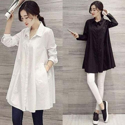ONM 롱남방 A라인롱남방 원피스 화이트 블랙 셔츠 플