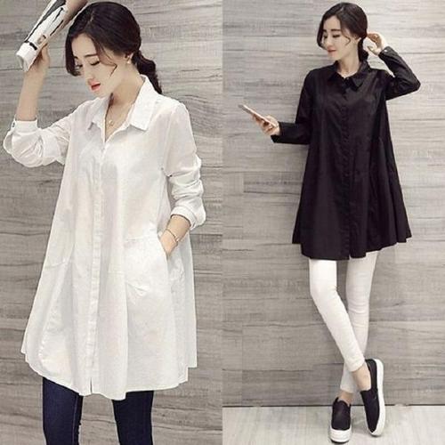 [엄지척]레이어드 셔츠 A라인 흰색 블라우스 롱남방 임부복_19645165_667501