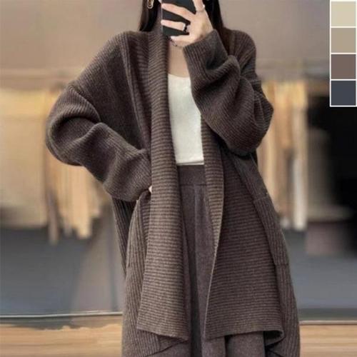 SUNALIFE 여성 벨벳촉감 니트 롱가디건 루즈핏 롱코트 부드러운 데일리룩