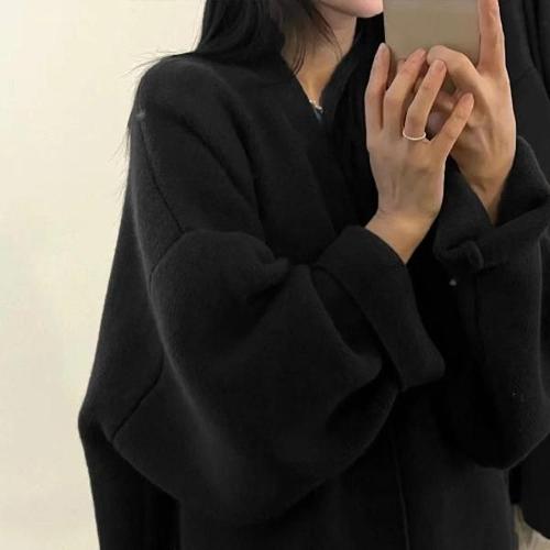 모몰라티 굵은 저지 하프 니트 카디건 나른한 루즈핏 코디 니트 코트