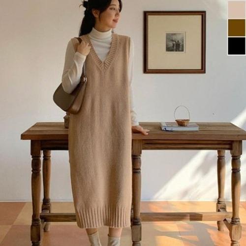 [엄지척]여성 브이넥 니트 롱 베스트 원피스_19911881_667501