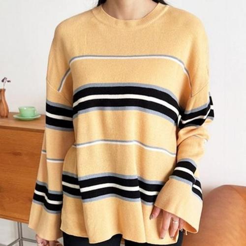 크롭니트 오버핏니트 여성겨울니트 보트넥니트 롱니트 여성니트티 배색니트