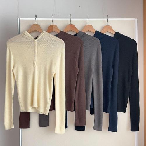 [옷자락] 여성 잔골지 후드 롱슬리브 니트티 가을 울버튼