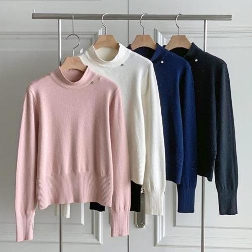[옷자락][다잇템] 여자 모크넥 펜던트 비스코스 트윙클 스페이스룩 반짝 롱슬리브 니트_23200299_588870