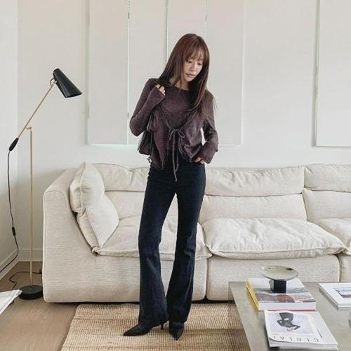 [다잇템_패션]여성 코디 롱슬리브 비침 니트티