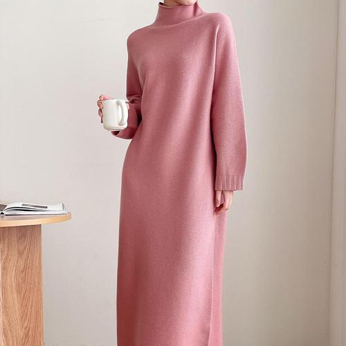 [옷자락] [시즌오프]겨울등원룩 목폴라 가오리 박시 울니트 롱원피스_5