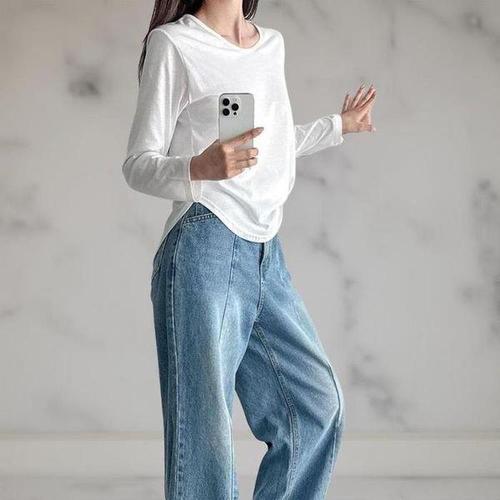 [다잇템]여자 코디 양모 빅사이즈 롱슬리브 티셔츠 니트