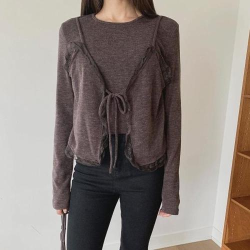 [다잇템][다잇템] 여성 롱슬리브 레이스 U넥 스웨터 스트랩 티셔츠_23200263_588872