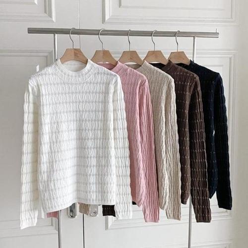 [다잇템][다잇템] 여성 니트카라 티셔츠 FW 롱슬리브 데일리룩_23200643_588872