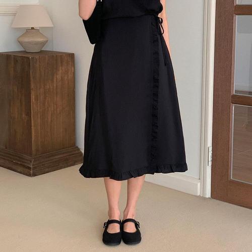 [다잇템]여자 귀여운 들러리룩 랩치마 프릴 롱스커트