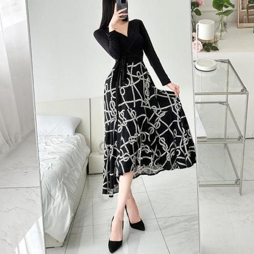 [신상오픈런]|KMO419B|닌블로 랩 긴원피스 여행룩 배색 프린트 여성 롱슬리브 비대칭_18169515_597559