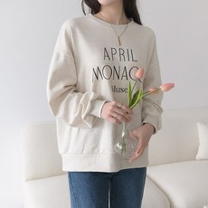 데일리앤 에이프릴 여성 오버핏 레터링 라벨 뒷트임 긴팔 맨투맨 티셔츠 간절기 롱티