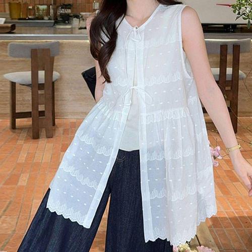 여성 펀칭 자수 롱 블라우스 나시 레이어드 뷔스티에 WFK80AY