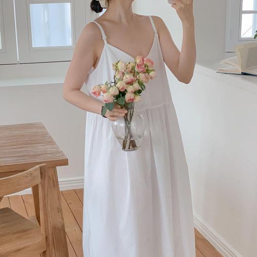 여성 바스락 원단 뷔스티에 민소매 나시 롱 원피스
