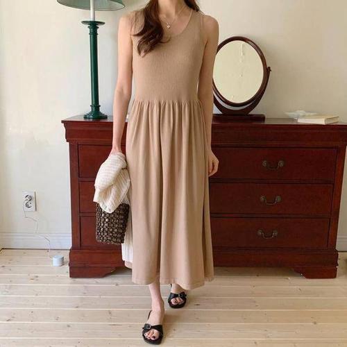 [마쟈]브이넥 뷔스티에 슬리브리스 롱 원피스