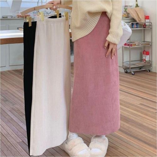 [에이치플러스몰]여성롱스커트 코듀로이 일자 골지스커트 겨울롱치마