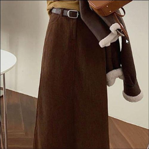 [에이치플러스몰]겨울 여성 롱스커트 A라인 골덴 스커트