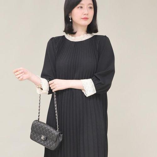 [애비뉴투지]엄마옷 플리츠 레이스 스텐드 카라 여성 봄 여름 칠부 루즈핏 롱 정장 원피스 K04422