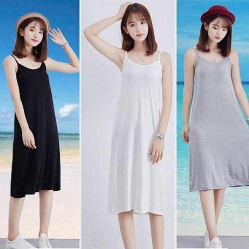 실크 감촉 부드러운 여성 슬립 인견 끈 조절 나시 런닝 원피스 이너 여자 잠옷 미니 롱 속치마 여름 속바지