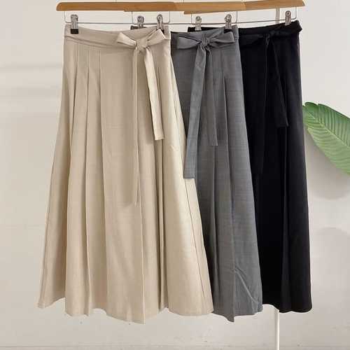 루브르 핀턱 주름 허리 리본 뒷밴딩 롱 스커트(3color)