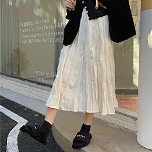 [하프클럽/]여름 쉬폰 주름 롱스커트 여성 편안한 미디스커트