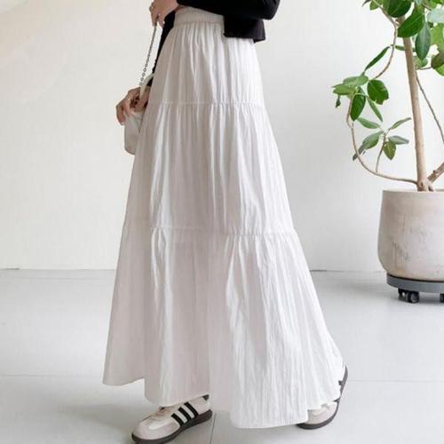 여성 여름 봄 데일리 주름 플레어 롱 스커트 치마