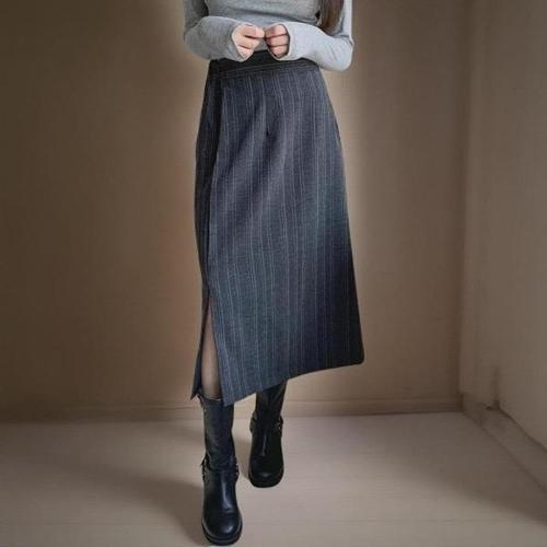 [다잇템][다잇템] 여성 베이직 단가라 롱 옆면 트임 뒷밴드 스커트_23047251_588872